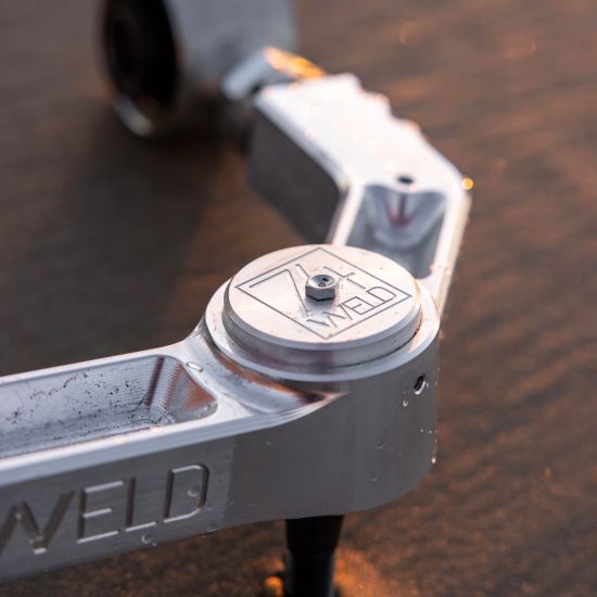 The 74Weld 5-Axis Upper Control Arms deliver improved performance while maintaining OEM driving characteristics. Each arm begins as a block of 6061 aluminum and is fully CNC-machined on a 5-axis mill to achieve exact geometry (including upper ball joint angle), precision fit, and a premium finish that stands apart.